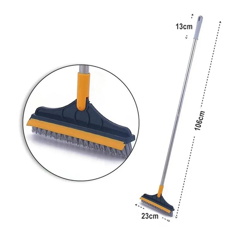 The 2-in-1 Adjustable Easy Cleaning and Wiper Brush mop saves time and energy with its swivel design and super stiff V-shaped bristles. The 2-in-1 Adjustable Easy Cleaning and Wiper Brush mop is designed to swivel, making it easy to clean grout lines in long strokes instead of having to stand directly in front or at the top of the line. The swivel design allows you to clean from any angle. Stiff bristles are tapered in a V-shape that makes cleaning hard-to-reach spots a piece of cake (grout lines, corners, tight spots, etc.).